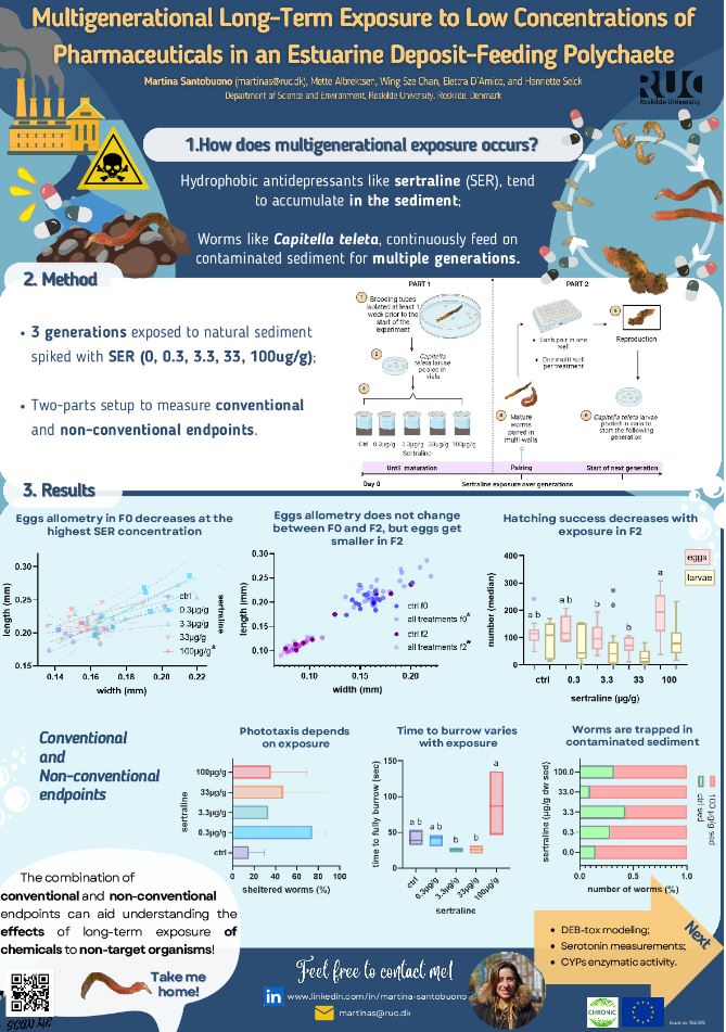 The interplay of natural and anthropogenic environmental stressors exerts profound impacts on biota, spanning from subtle molecular changes to pronounced phenotypic responses spanning generations. These responses shape the resistance and resilience of individuals and populations over both short and long-term periods, influencing current and future ecological dynamics. Understanding how early-life and historical exposures to contaminants translate into phenotypic effects, even across successive generations, is vital for ecological risk assessment. However, the intricate link between phenotypic outcomes and underlying mechanisms of long term and chronic effects remains largely unexplored. This session seeks to bridge critical knowledge gaps by exploring the stability and persistence of effects in organisms, including but not limited to multi- and transgenerational scales, irrespective of pulse exposure, continued exposure or renewed environmental challenges. Recent studies indicate that developmental and chronic exposure to environmental contaminants such as micro- and nano-plastics, PFOS/PFAS, pharmaceuticals, toxins, and endocrine disruptors can induce persisting and heritable physiological, reproductive, and behavioural effects. These adverse impacts, molecularly mediated namely by gene expression and their regulatory epigenetic mechanisms, may compromise organisms’ fitness and adaptive capacity across generations. We invite contributions that study long term effects of single and multiple stressors. We are particularly interested in studies employing advanced technologies, including genetic manipulations, and omics approaches (transcriptomics, metabolomics, epigenomics), but also novel complex experimental designs to uncover these mechanisms in both model and non-model organisms. Our goal is to facilitate the integration into ecological risk assessment frameworks of biomarkers that can reflect long term effects of contaminants in the biota. We encourage submissions that provide novel insights into the mechanistic basis of long-term ecological impacts, with an emphasis on emerging contaminants and their complex, eventually cross-generational effects. Join us in this session to advance the frontier of ecological research, bridging between molecular biology and ecological risk assessment, and paving the way for more comprehensive environmental protection strategies.