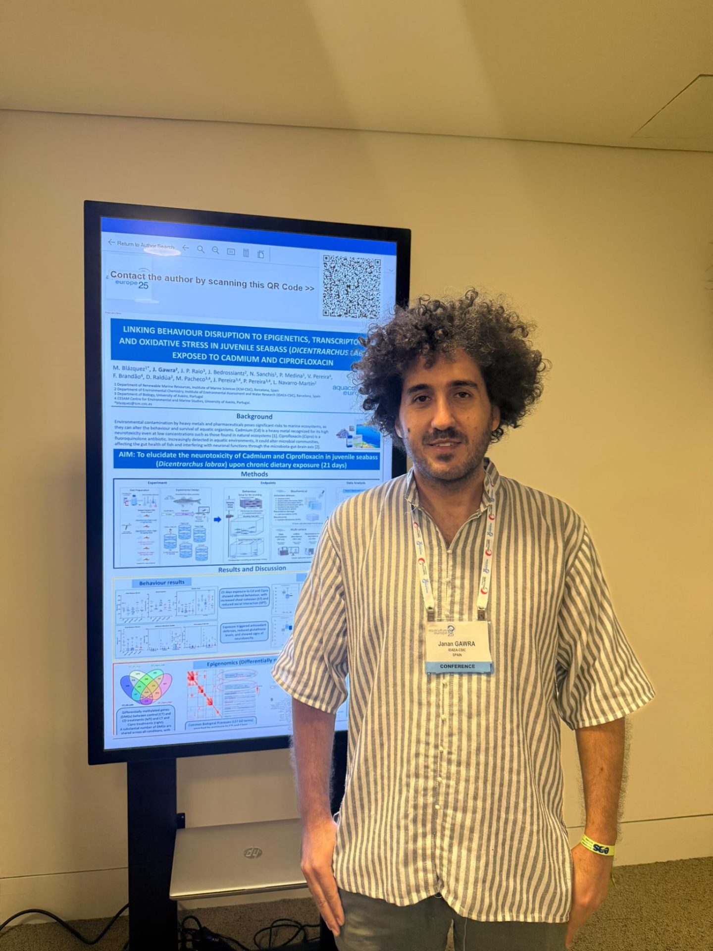 Raio JP, Gawra J, Pereira V, Sanchís N, Medina P, Bedrossiantz J, Pacheco M, Pereira JL, Blázquez M, Pereira P, Navarro-Martín L. Assessing the neurotoxic and epigenetic effects of cadmium on juvenile seabass (Dicentrarchus labrax). Poster.